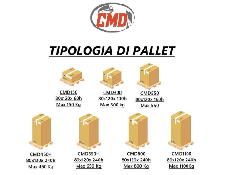Dalla piccola fornitura alla merce industriale, CMD ti propone pallet con diverse altezze e portate, per adattarsi perfettamente al tuo carico.